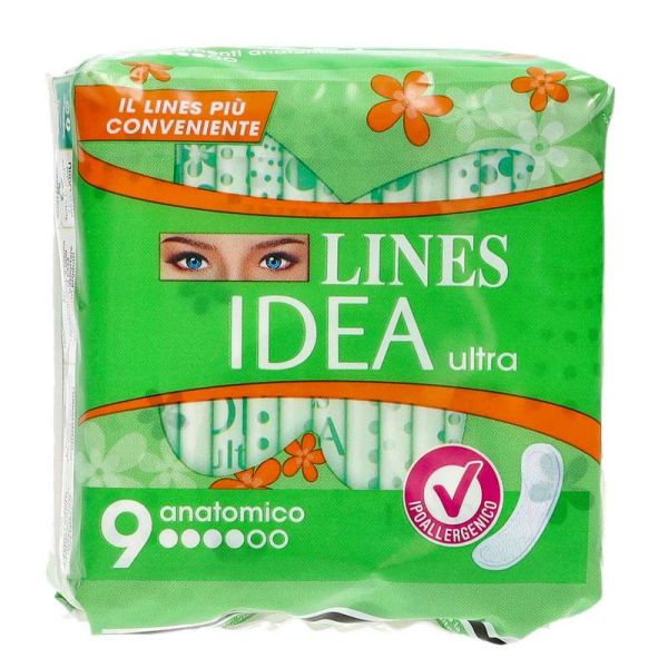 Lines Idea Assorbenti Ultra Anatomico è appositamente studiato per garantire la massima aderenza alla pelle, senza però provocare irritazioni con il contatto conitnuo. Dermatologicamente testato, assorbe facilmente flussi di liquidi. Senza ali.