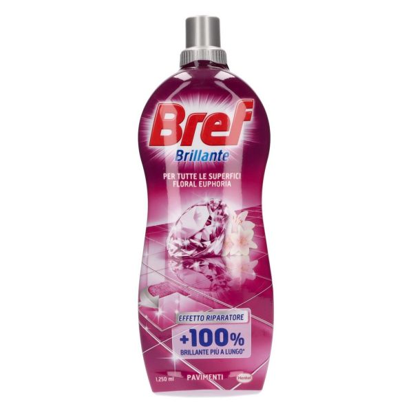 Bref Brillante Detersivo Pavimenti Floral Euphoria, effetto riparatore, è ideale per tutte le superfici. Deterge e igienizza, per un pavimento più brillante dalla prima passata. Dona freschezza ed una piacevole profumazione duratura